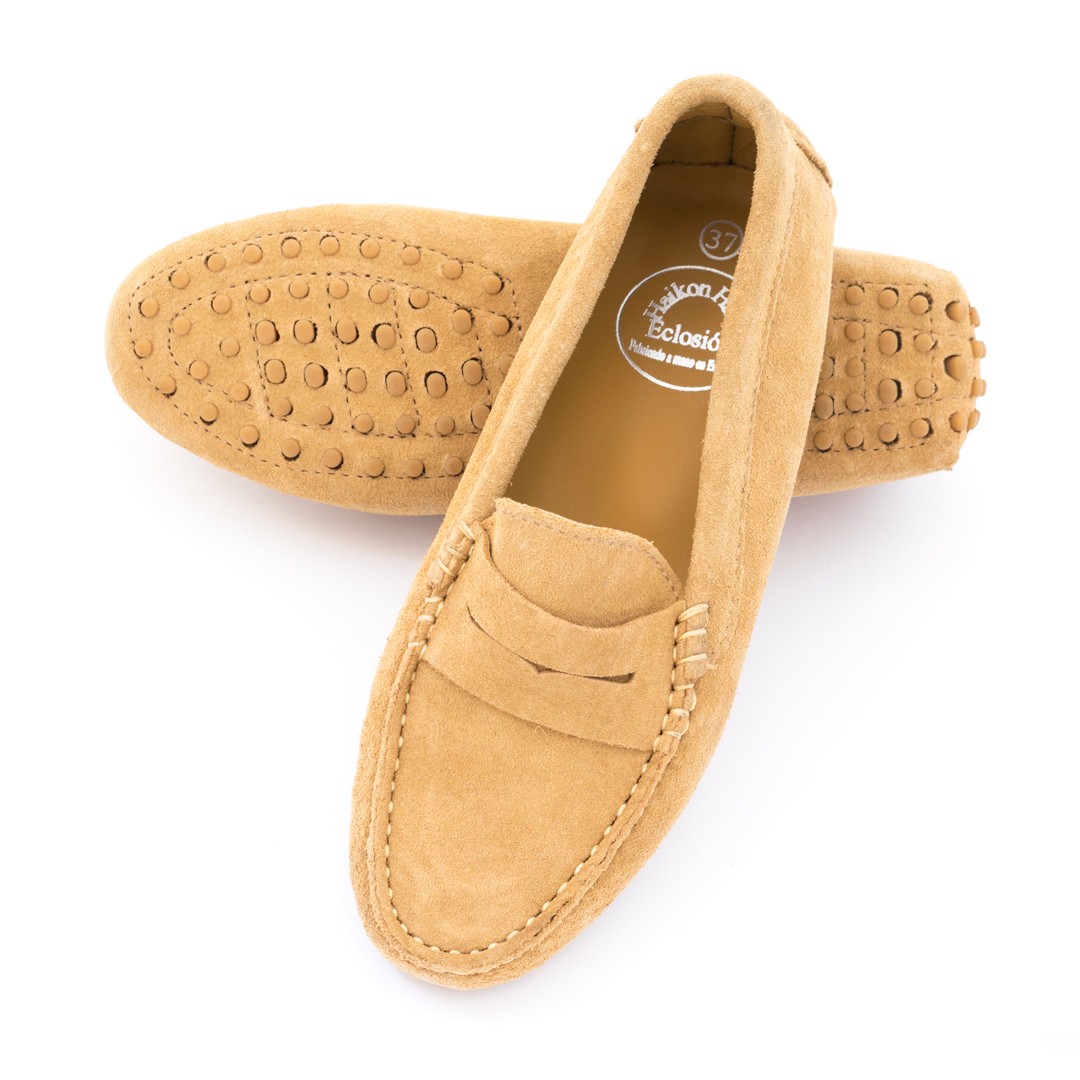 Mocasines afelpados con antifaz, color arena
